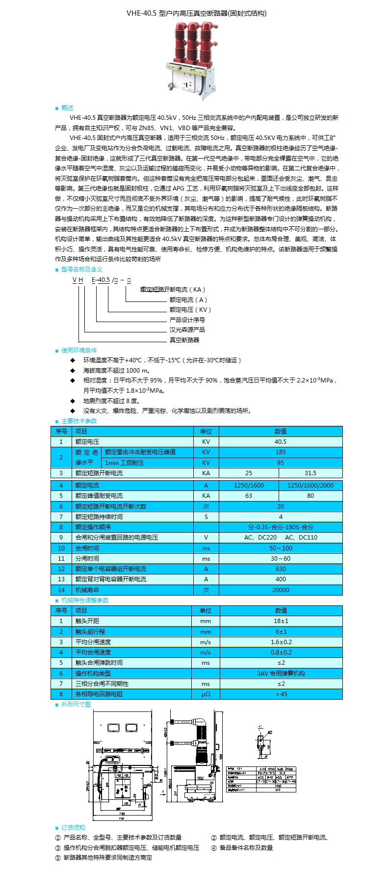| VHE-40.5型戶內高壓真空斷路器(固封式結構) | |