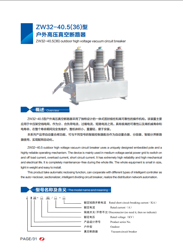 ZW32-40.5(36)型戶外高壓真空斷路器